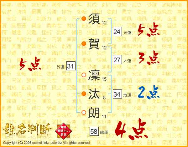 須賀凜汰朗さんの総運は58画の4点!
