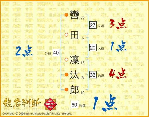 轡田凜汰郎さんの天運は27画の3点!