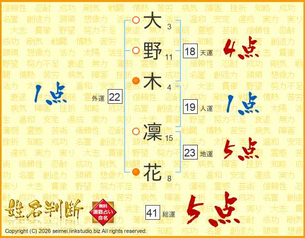 大(3画)野(11画)木(4画) 凜(15画)花(8画)