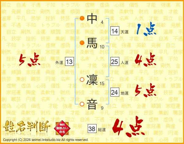 中馬凜音さんの総運は38画の4点!