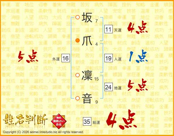 坂爪凜音さんの総運は35画の4点!