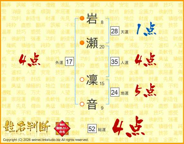 岩瀬凜音さんの総運は52画の4点!
