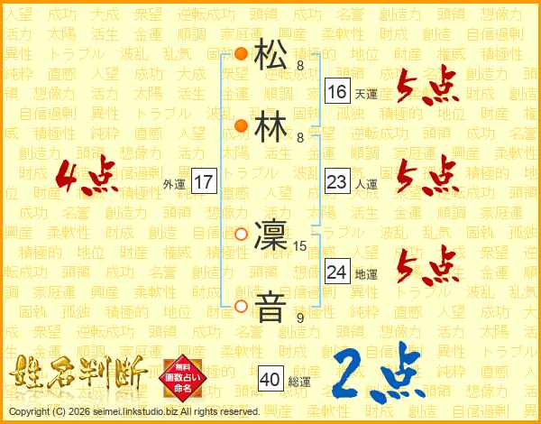 松林凜音さんの天運は16画の5点!