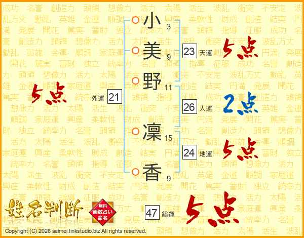 小美野凜香さんの総運は47画の5点!