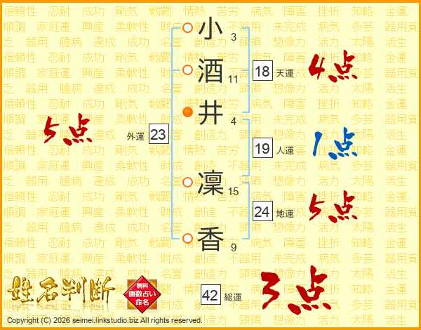 小(3画)酒(11画)井(4画) 凜(15画)香(9画)