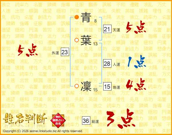 青(8画)葉(13画) 凜(15画)