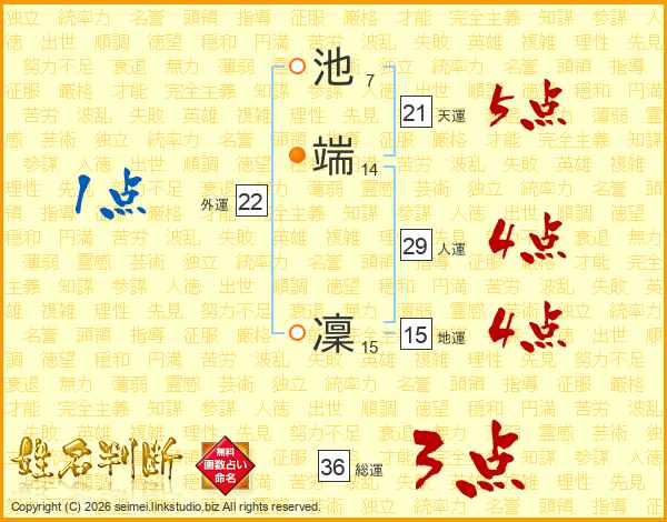 池端凜さんの天運は21画の5点!