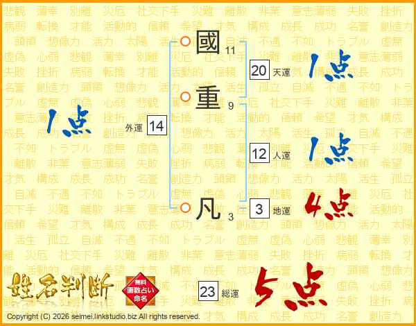 國重凡さんの総運は23画の5点!