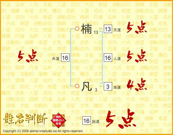 楠凡さんの総運は16画の5点!