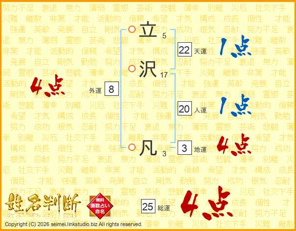 立沢凡さんの総運は25画の4点!