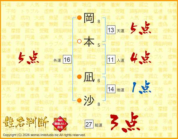 岡本凪沙さんの総運は27画の3点!