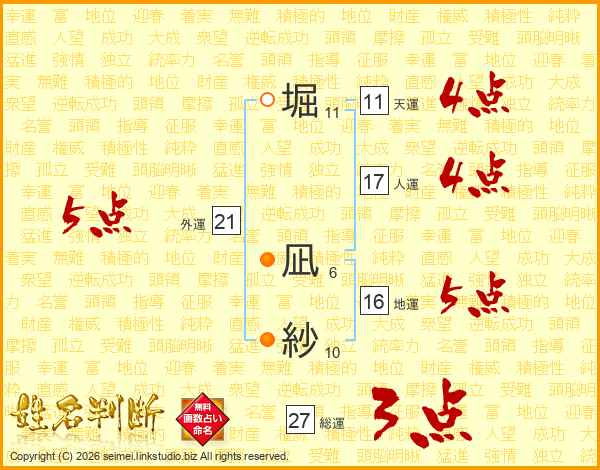 堀凪紗さんの総運は27画の3点!