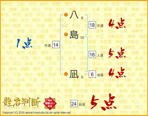 八島凪さんの総運は24画の5点!