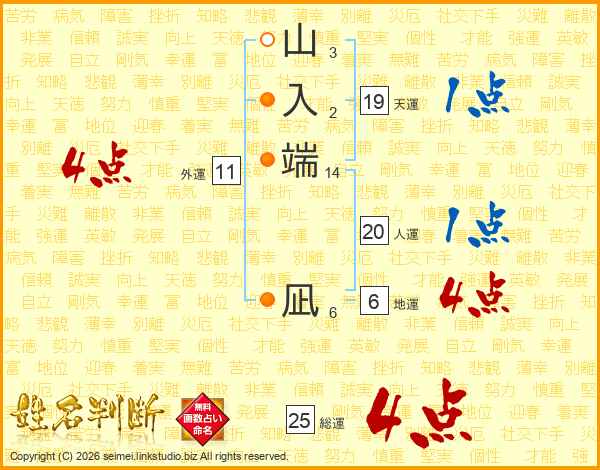 山入端凪さんの総運は25画の4点!