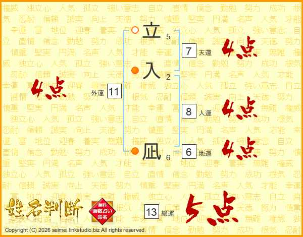 立入凪さんの総運は13画の5点!
