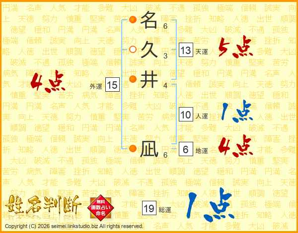 名(6画)久(3画)井(4画) 凪(6画)