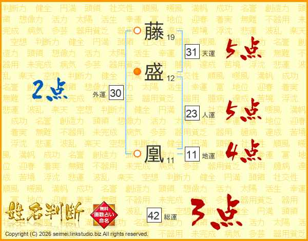 藤盛凰さんの天運は31画の5点!