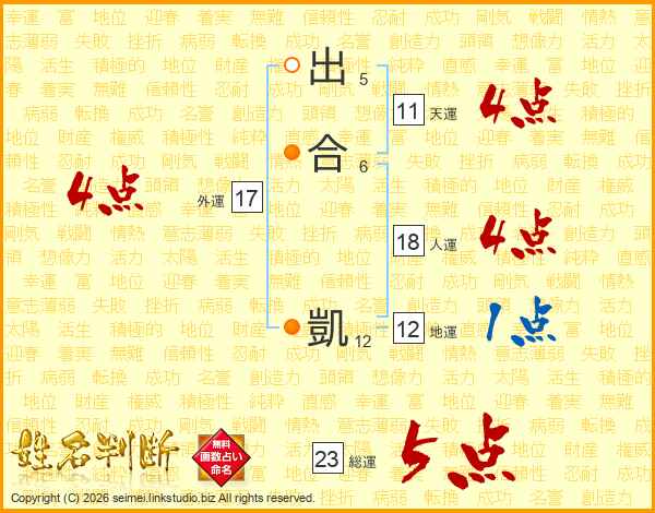 出合凱さんの総運は23画の5点!