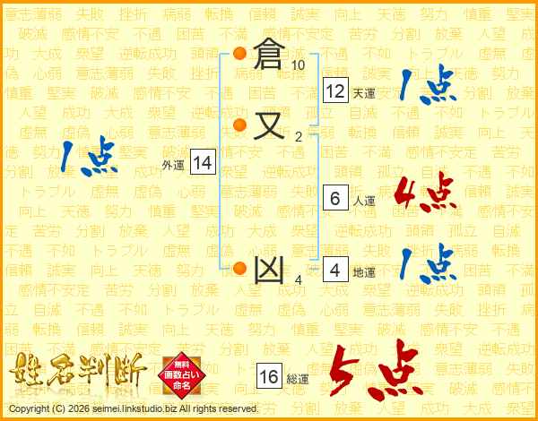倉又凶さんの総運は16画の5点!