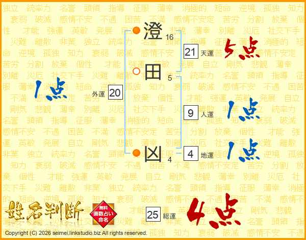 澄田凶さんの総運は25画の4点!