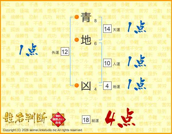 青地凶さんの総運は18画の4点!