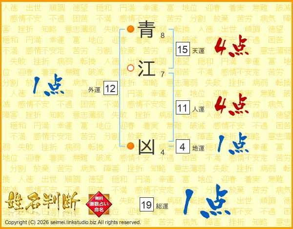 青(8画)江(7画) 凶(4画)