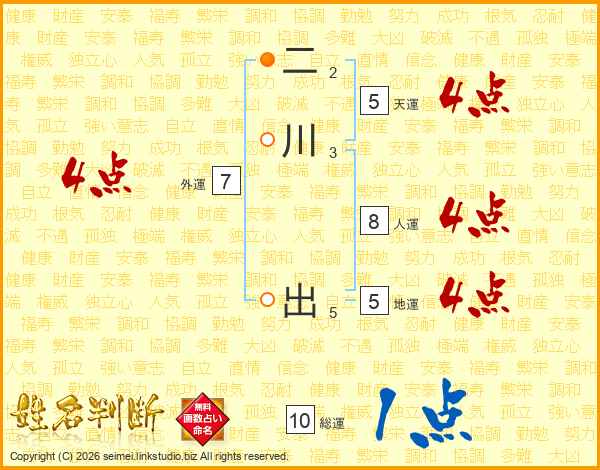 二川出さんの総運は10画の1点!