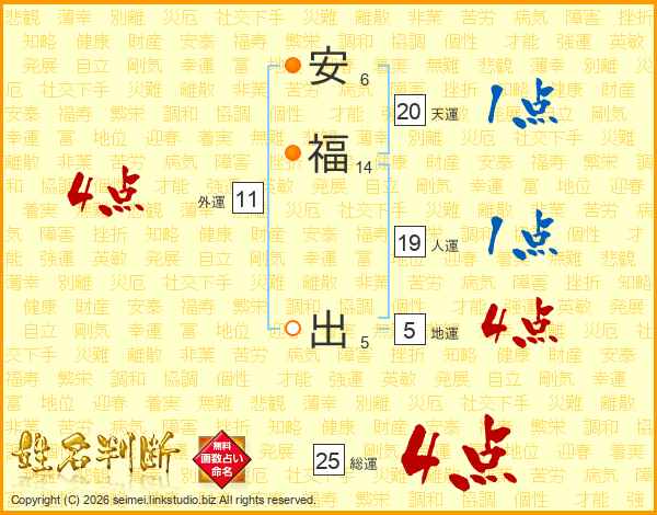 安福出さんの総運は25画の4点!