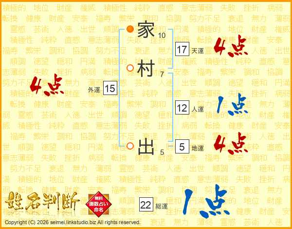 家村出さんの天運は17画の4点!