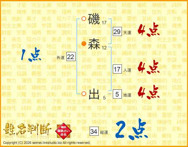 磯森出さんの人運は17画の4点!