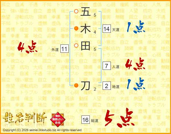 五木田刀さんの天運は14画の1点!