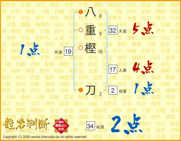 八重樫刀さんの総運は34画の2点!