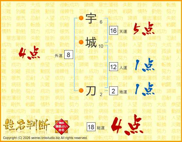 宇城刀さんの総運は18画の4点!