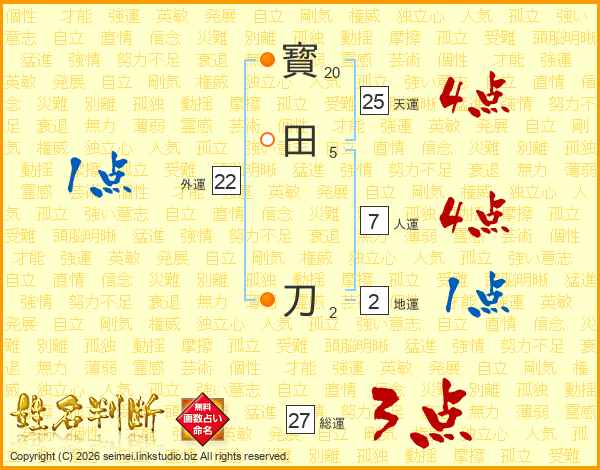 寳田刀さんの天運は25画の4点!