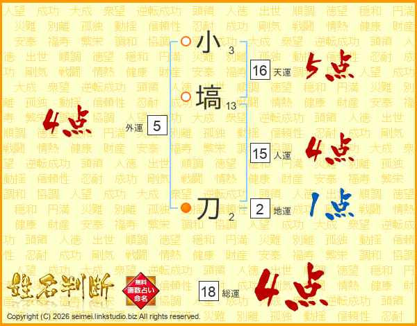 小塙刀さんの総運は18画の4点!