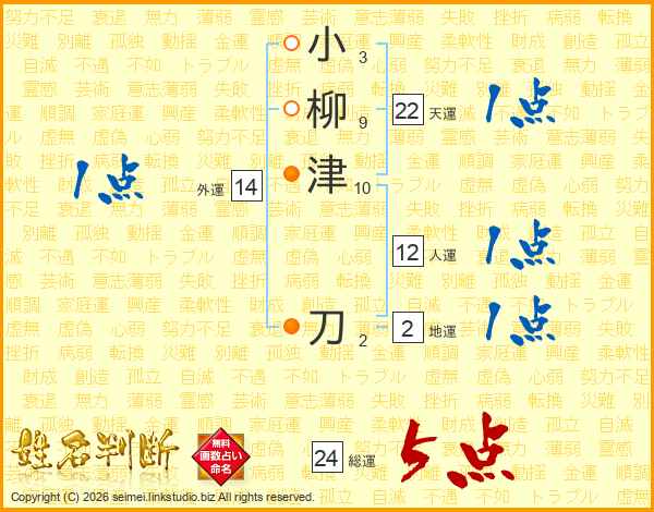 小柳津刀さんの総運は24画の5点!