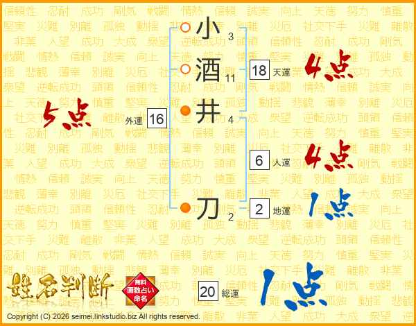 小酒井刀さんの天運は18画の4点!