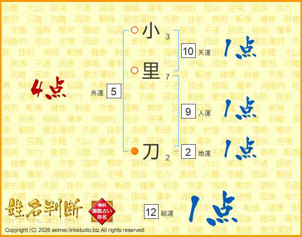 小里刀さんの総運は12画の1点!