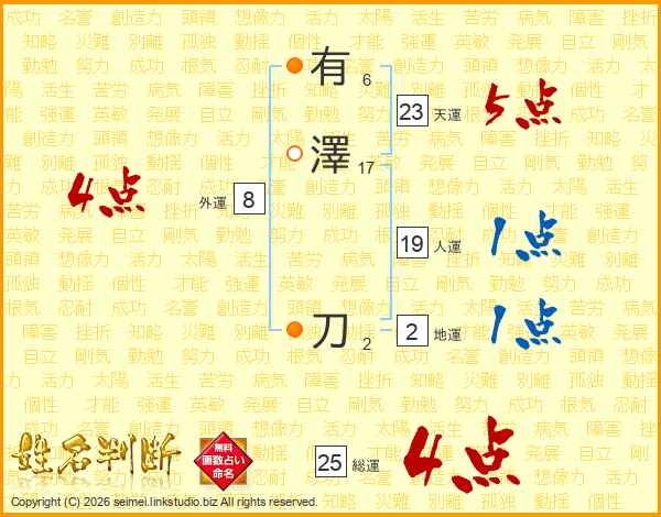 有澤刀さんの総運は25画の4点!