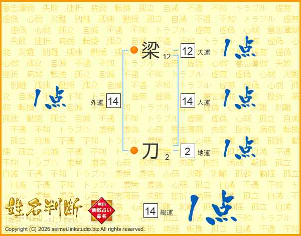 梁刀さんの人運は14画の1点!