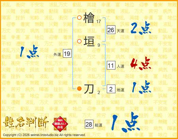 檜垣刀さんの天運は26画の2点!