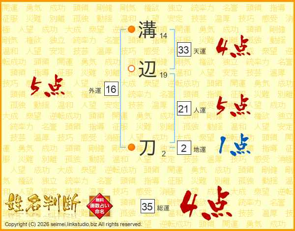 溝辺刀さんの総運は35画の4点!
