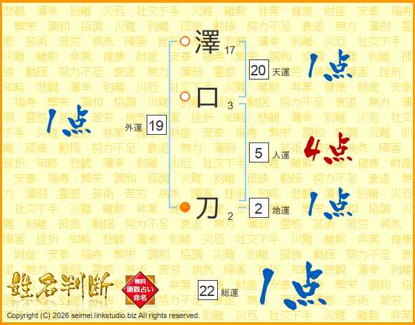 澤口刀さんの天運は20画の1点!