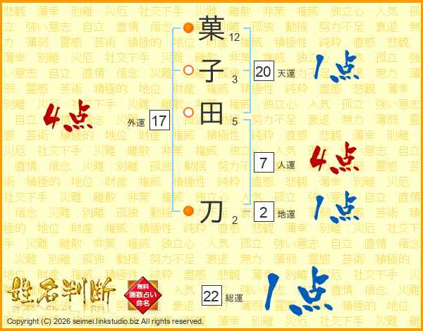 菓子田刀さんの人運は7画の4点!