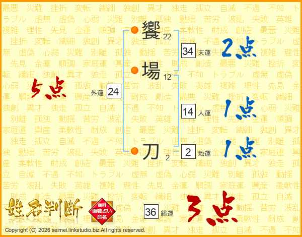 饗場刀さんの天運は34画の2点!