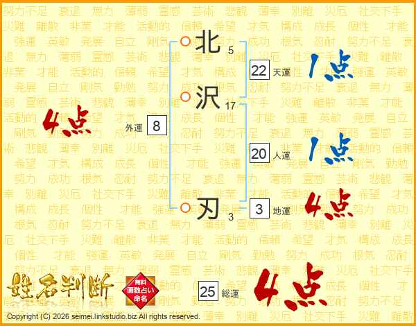 北沢刃さんの人運は20画の1点!