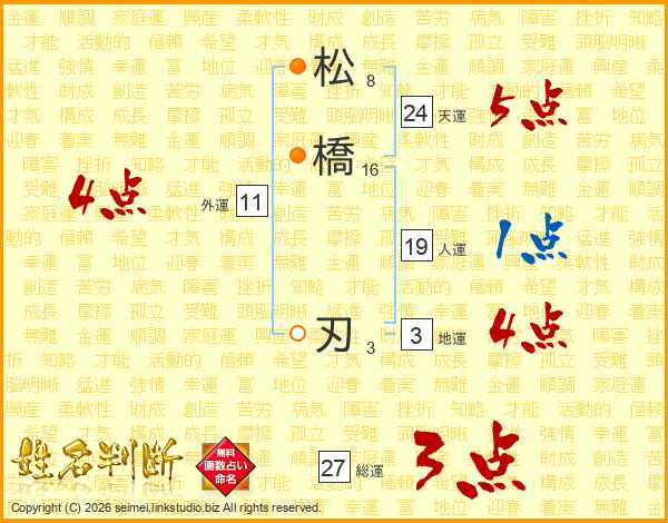 松(8画)橋(16画) 刃(3画)