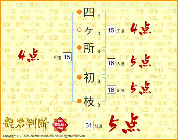 四(4画)ヶ(3画)所(8画) 初(8画)枝(8画)