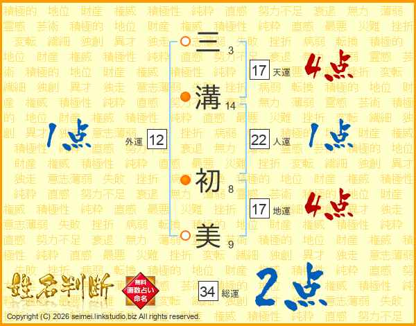 三溝初美さんの天運は17画の4点!
