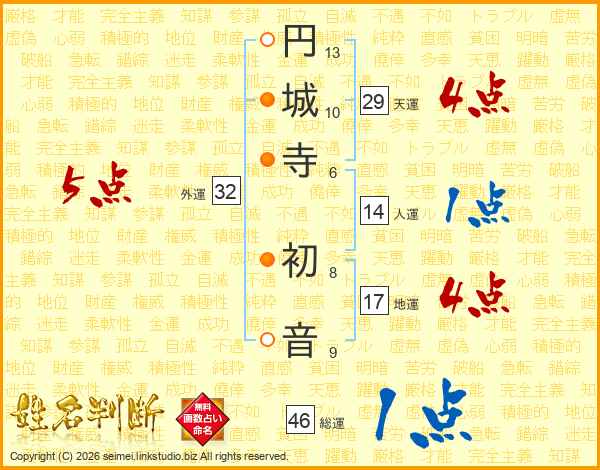 円城寺初音さんの総運は46画の1点!